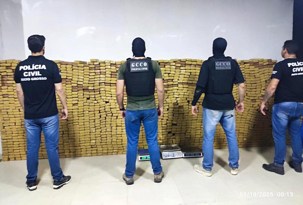Uma megaoperação realizada pela Polícia Civil de Mato Grosso resultou na apreensão de aproximadamente 1.988 tabletes de maconha na noite de quinta-feira (2), em Cuiabá. A ação foi conduzida pela Gerência de Combate ao Crime Organizado (GCCO) e pela Delegacia Especializada de Repressão ao Crime Organizado (Draco), e prendeu em flagrante quatro homens ligados a uma facção criminosa.