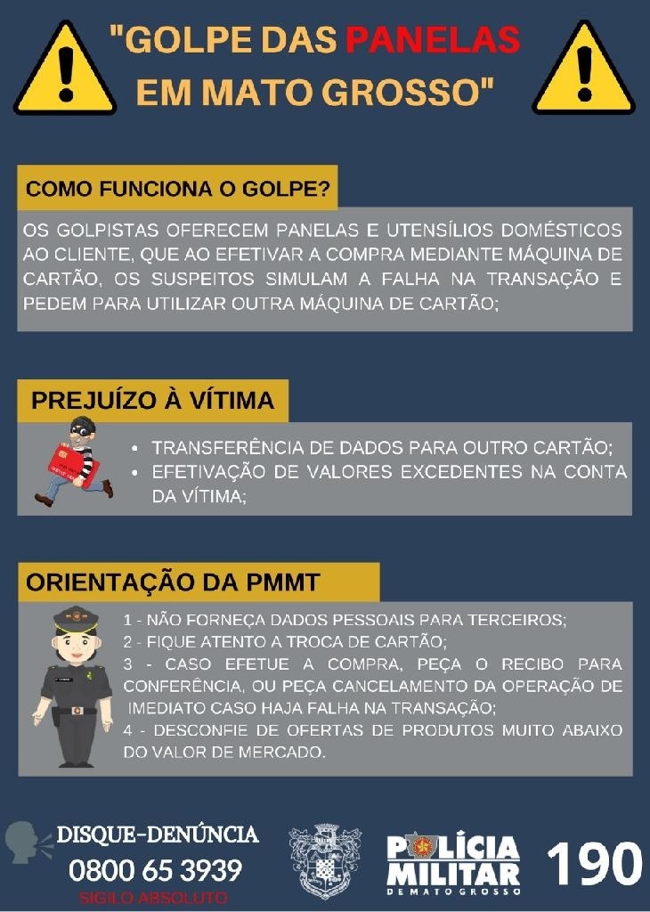 Polícia Militar de Mato Grosso alerta população sobre Golpe das Panelas