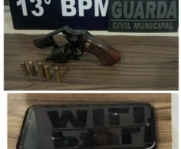 Ele foi capturado, e durante a abordagem, foi localizado com o suspeito, um revólver, calibre 38, com cinco munições intactas, e um celular que ele havia roubado da vítima.