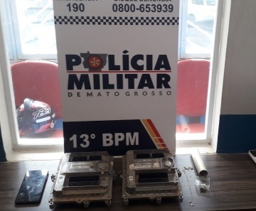 Fizeram a abordagem nos indivíduos, e durante revista na bolsa de um deles, foi encontrado duas peças de caminhão de alto valor, uma porção de maconha e embalagem para embalar a venda do entorpecente. Ao serem questionados pelos policiais sobre os objetos encontrados, eles negaram ter cometido o roubo. Um deles já tem passagem pela polícia por tráfico de drogas no município de Nova Mutum.