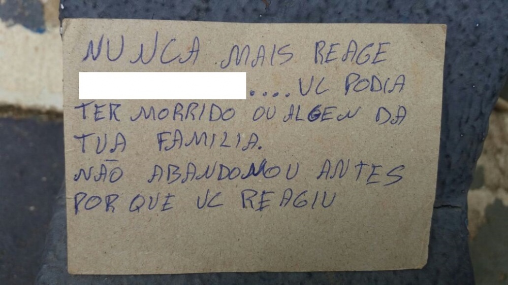Um fato que chamou a atenção dos militares é que dentro do veículo havia um bilhete com os seguintes dizeres: “Nunca mais reage M. Você podia ter morrido ou alguém da tua família. Não abandonei antes, porque você reagiu”.