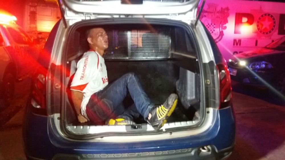Assim que os marginais foram embora a Polícia Militar foi acionada e passou a procura-los. Os dois foram avistados, na BR-163, saída para Sorriso e interceptados. Um disparo de arma de fogo chegou a ser efetuado por um dos marginais, contra os policiais, porém ninguém ficou ferido. O marginal que estava no carro acabou sendo detido. O outro que estava na moto, abandonou a mesma e se embrenhou no mato, não sendo mais localizado.