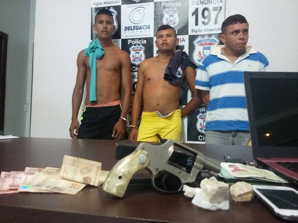 Com os suspeitos foram apreendidos 1 revólver cal. 38, uma quantidade significativa de drogas, um notebook, 5 aparelhos celulares e 1 carregador portátil.
