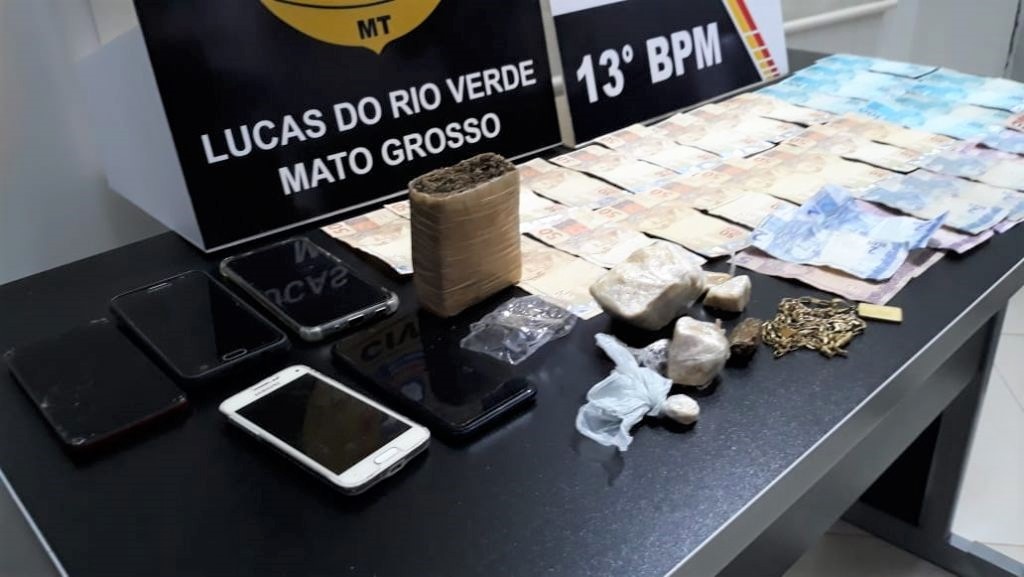 No veículo também foram encontradas porções de entorpecente, o que levou os policiais a darem sequência às investigações, conseguindo na Justiça um mandado de busca a uma residência onde foram apreendidos mais de R$ 1,5 mil em dinheiro, joias, cinco celulares e entorpecentes.