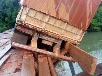 O acidente ocorreu em uma ponte de madeira sobre o rio Teles Pires, na MT-490, que liga Sorriso a Lucas do Rio Verde, ontem à tarde. A estrutura não suportou o peso do bitrem carregado com milho e acabou cedendo. O último vagão da carreta ficou inclinado para um dos lados da ponte. O veículo não chegou a cair no rio.