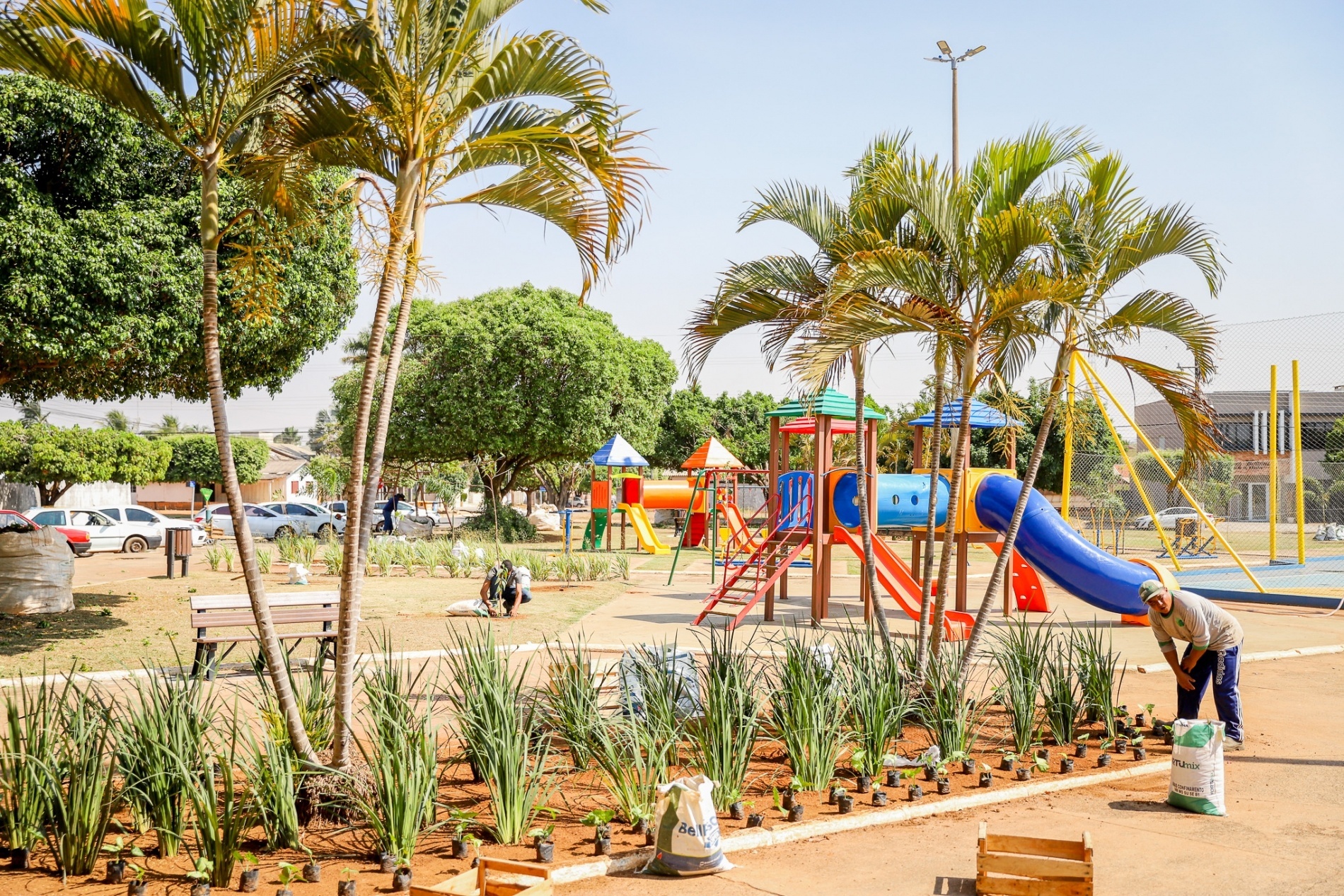 Entre as ações estão a pintura da quadra, um espaço de lazer destinado aos portadores de deficiência física, novos bancos, lixeiras, revitalização do playground e o paisagismo que inclui nova arborização, plantas regionais e arbusto de gramas.