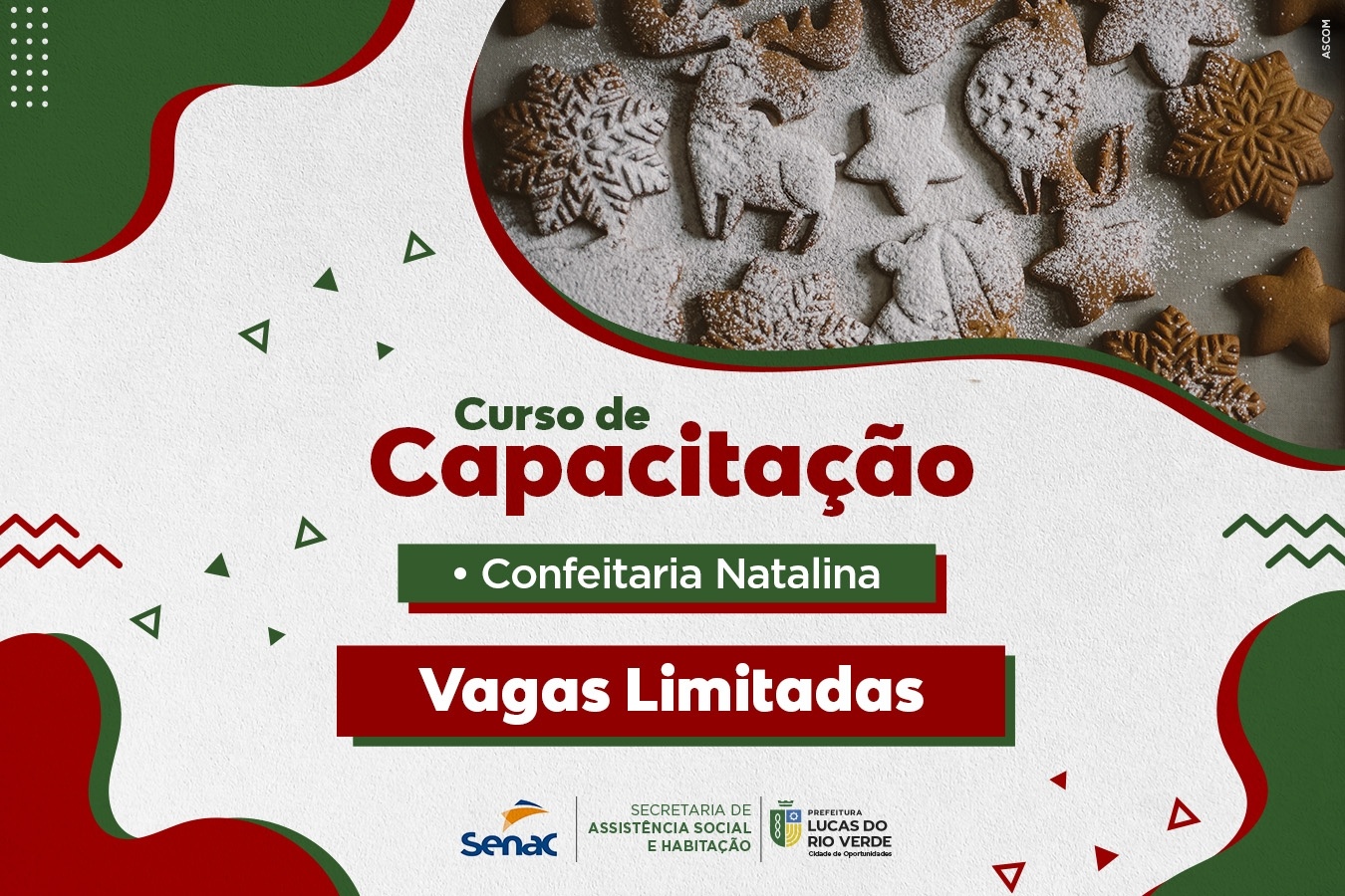 A Secretaria de Assistência Social e Habitação de Lucas do Rio Verde abre inscrições para o curso de Confeitaria Natalina, a partir de segunda-feira (28). A capacitação é gratuita, ofertada em parceria com o Senac.
