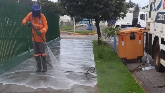 Para a limpeza, as equipes utilizam uma solução de água com um produto amoniacal, indicado para limpeza de pisos, paredes e uso geral, com formulação a base de amônia para facilitar nas limpezas mais pesadas. O produto, aplicado com o caminhão hidrojato, é o mesmo utilizado na limpeza dos contentores, porém com concentração maior para as áreas externas das unidades de saúde.