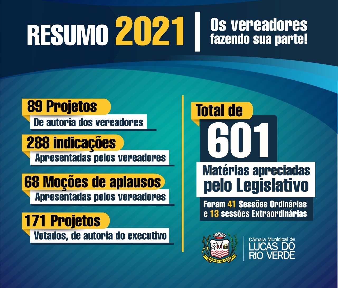 Um total de 41 Sessões Ordinárias e 13 Extraordinárias foram realizadas, resultando na apreciação de 601 matérias que incluem: projetos, indicações, substitutivos de lei, entre outros. Foi intensa a execução dos trabalhos e o aprendizado dos legisladores, além do comprometimento de todos.