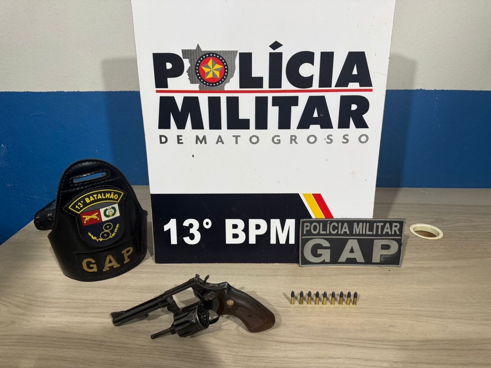 O condutor de uma caminhonete, de 36 anos, foi detido por policiais militares do Grupo de Apoio (GAP), ontem à noite, ao ser acusado por porte ilegal de arma de fogo, durante ação de patrulhamento no bairro Bandeirantes. A abordagem policial resultou na apreensão de um revólver calibre 22, municiado com nove munições.