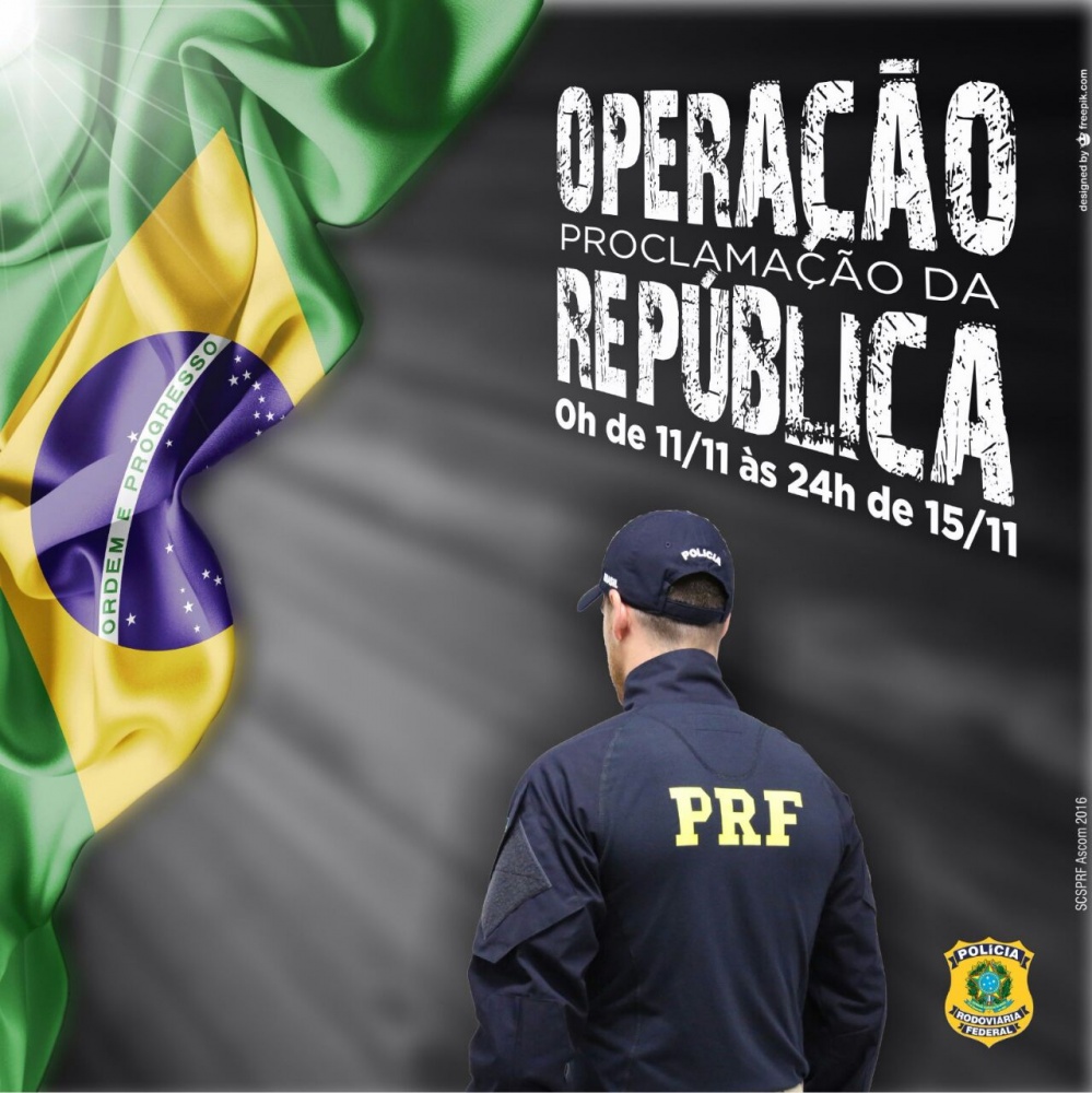 A Polícia Rodoviária Federal (PRF) inicia a Operação Proclamação da República nesta sexta-feira (11) com reforço no policiamento em todo o Brasil. Até a próxima terça-feira (15), a PRF intensificará suas ações no policiamento ostensivo preventivo em trechos com maior índice de acidentes. Com a expectativa de aumento no fluxo de veículos, o Órgão realizará operações simultâneas para coibir infrações de trânsito em diversos pontos das rodovias federais.