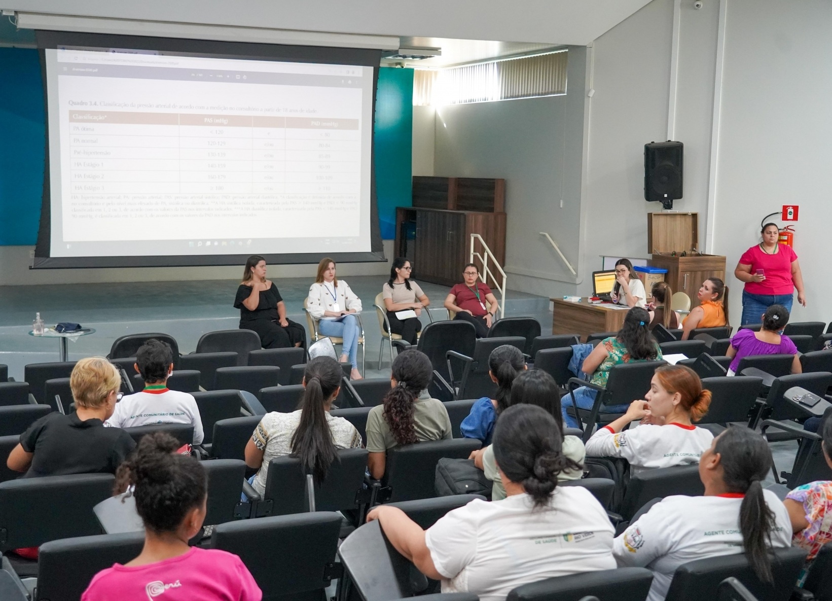 Equipes das unidades de saúde de Lucas do Rio Verde participaram, nesta terça-feira (23), da oficina com o tema hipertensão, em cumprimento das atividades do segundo módulo do Projeto de Intervenção in Loco (PIL). O evento reuniu profissionais da Saúde no auditório do Paço Municipal.