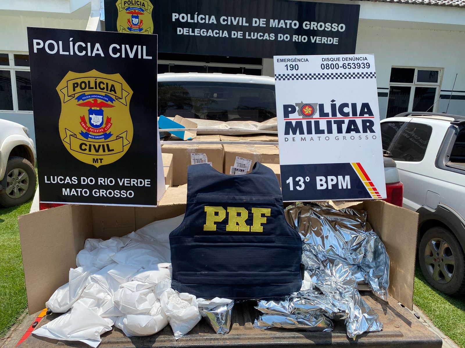 Por meio de um trabalho integrado entre a Polícia Civil, Polícia Militar e Polícia Rodoviária Federal, foi efetuada a prisão de quatro suspeitos de realizado o transporte de defensivos agrícolas. Foi apreendida uma carga de produtos (avaliados em R$ 700 mil), três camionetes, quatro arma de fogo e R$ 5 mil em dinheiro.