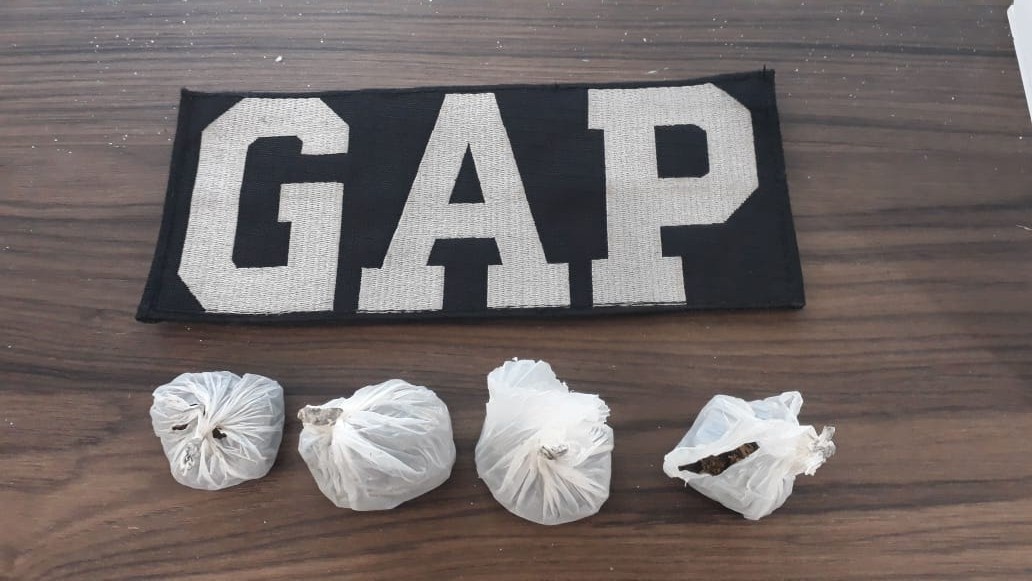 Na busca pessoal foi encontrado no bolso do seu short 4 porções de substância análoga à maconha (16,5G).