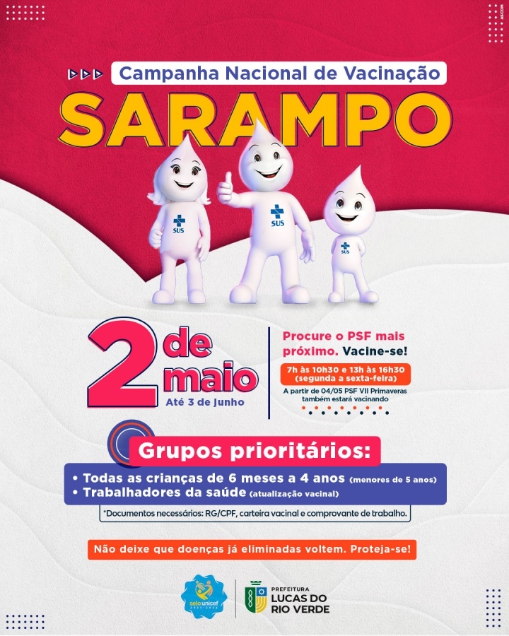 Desde o início das campanhas, em 11 de abril, pouco mais de 5.300 doses contra gripe e sarampo foram aplicadas em Lucas do Rio Verde.