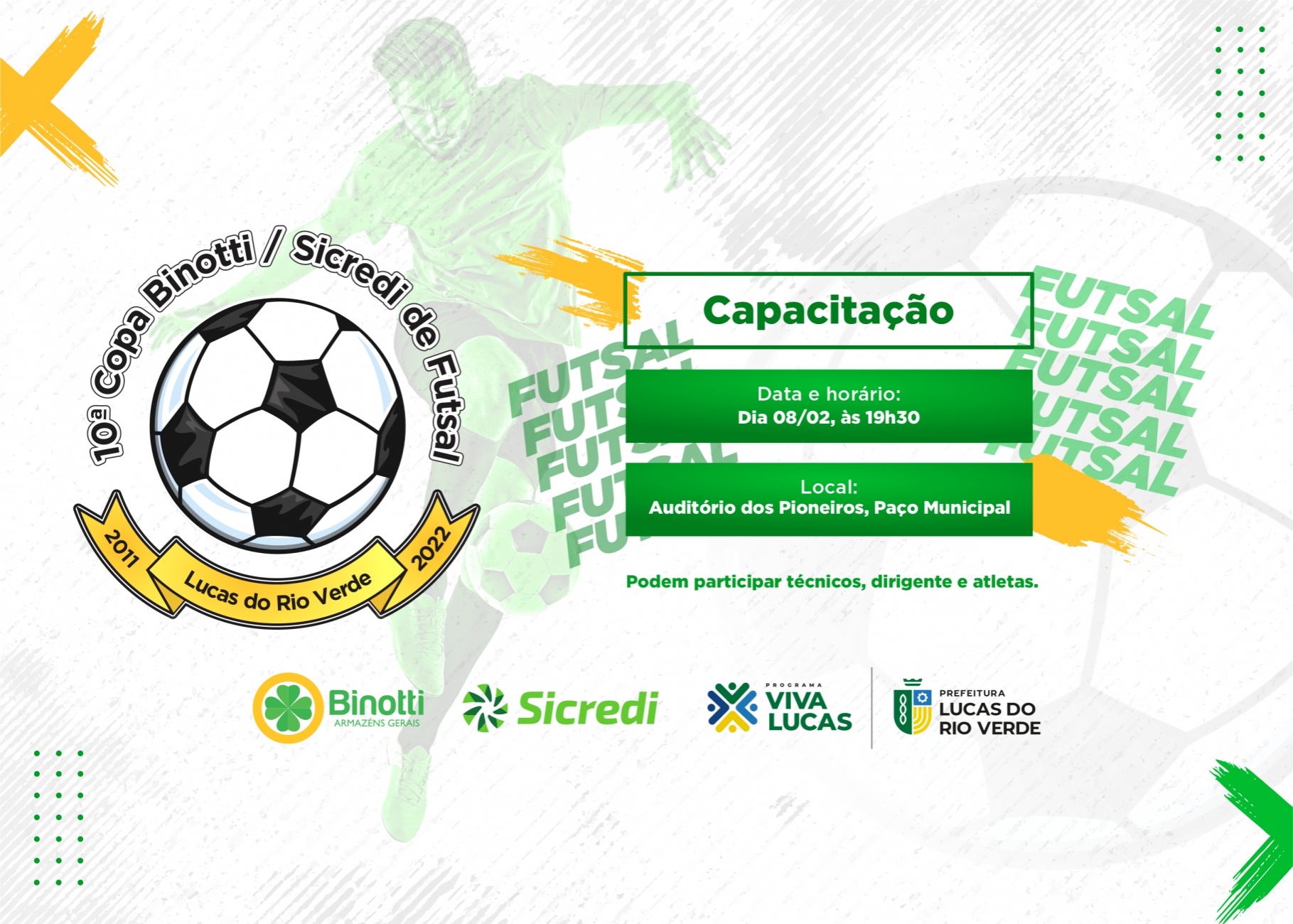 A Secretaria de Esporte e Lazer de Lucas do Rio Verde realizará, na próxima terça-feira (08), às 19h30, no Auditório do Paço Municipal, uma capacitação para os dirigentes das equipes que devem participar da 10ª Copa Binotti Sicredi de Futsal.