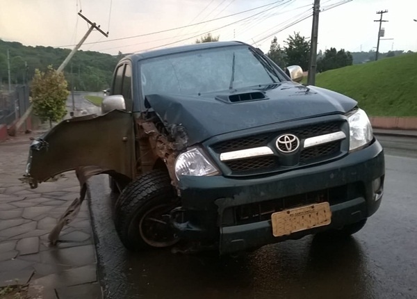 Sob o efeito de álcool, motorista bate camionete em poste de concreto