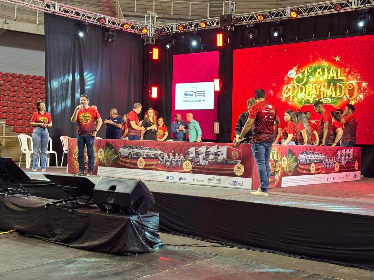 A Federação das Câmaras de Dirigentes Lojistas de Mato Grosso (FCDL-MT), as CDLs de Mato Grosso e a Secretaria de Desenvolvimento Econômico (SEDEC) realizaram o sorteio da Campanha Natal Premiado CDL, nesta sexta-feira (12.01). O evento reuniu diversas autoridades e presidentes das CDLs de Mato Grosso, sendo realizado no Ginásio Poliesportivo Aecim Tocantins.