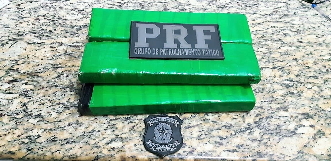 Ao proceder fiscalização minuciosa em suas bagagens, os PRF's encontraram 5 tabletes de substância análoga a maconha, pesando aproximadamente 5,50kg.