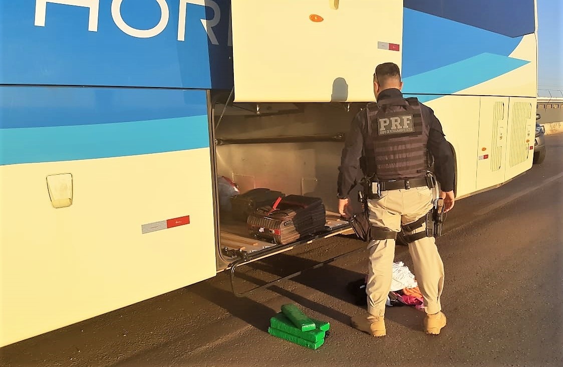 Suspeito é detido em ônibus pela PRF, com 5,5kg de maconha em Lucas do Rio Verde