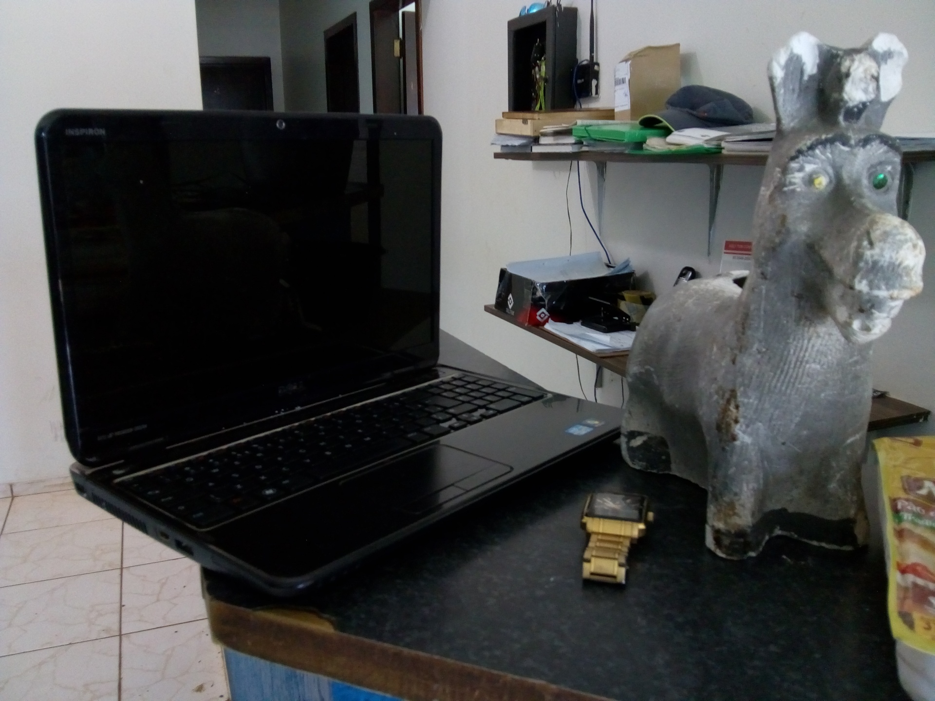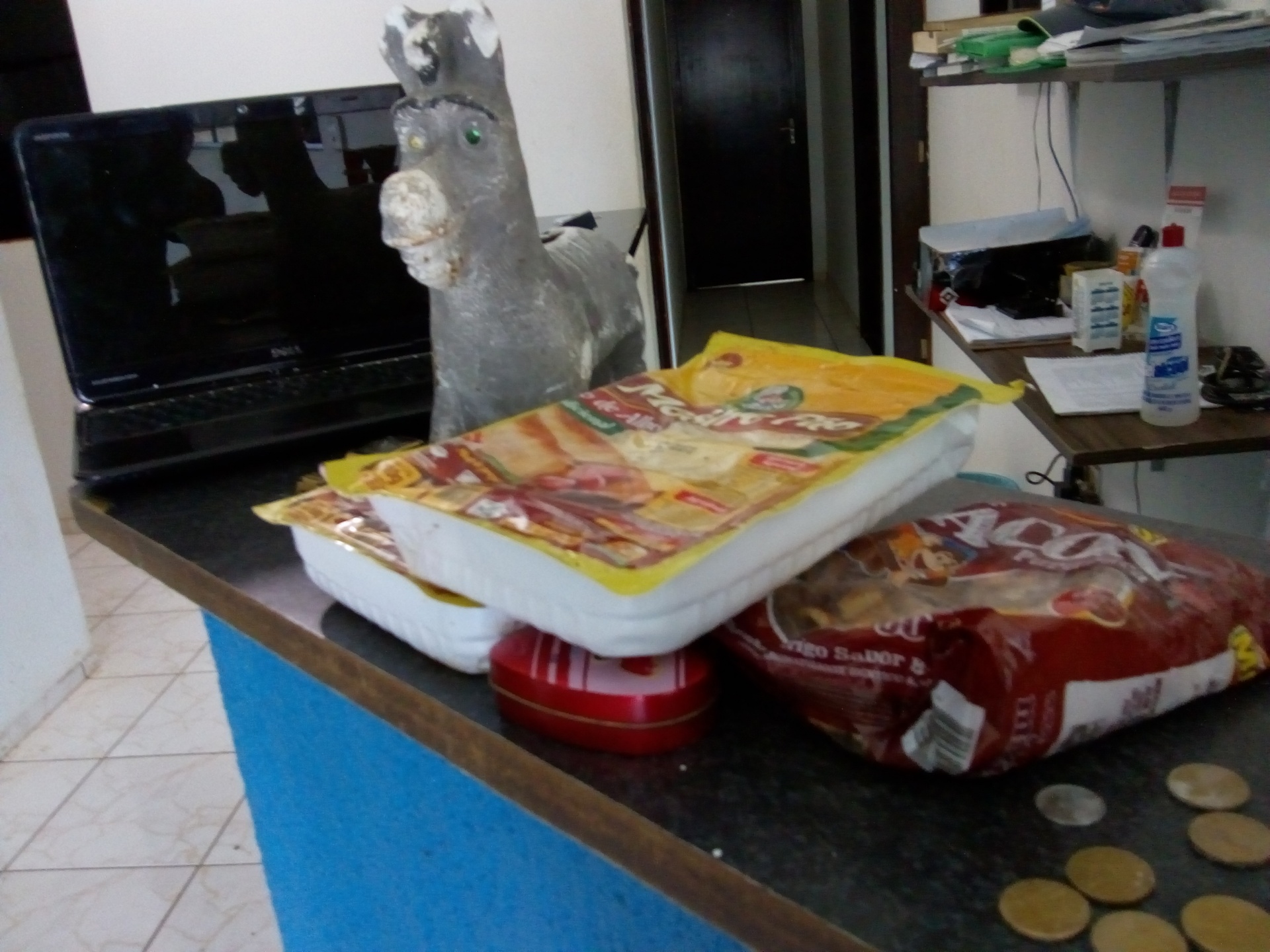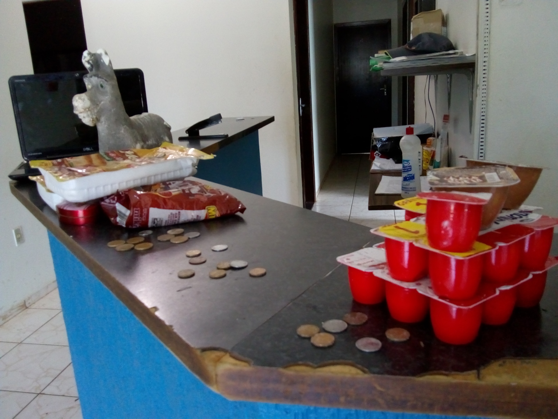 Os policiais fizeram rondas e encontraram o rapaz de 21 anos, que já é conhecido dos meios policiais, um uma bolsa contendo um notebook, um cofrinho cheio de moedas, além de alimentos, que teria furtado dessa casa.