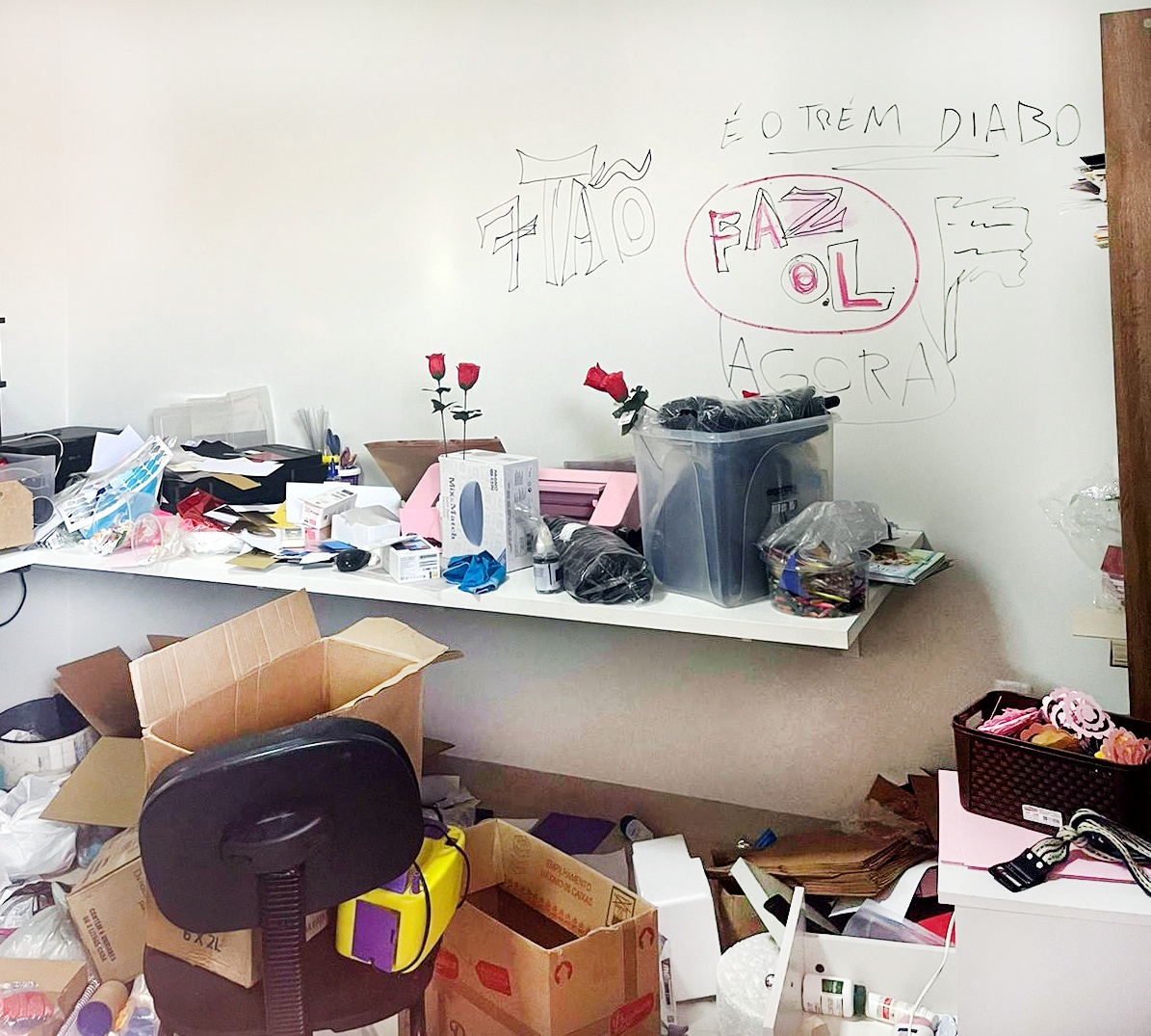 Os suspeitos reviraram a casa, deixando uma grande bagunça no imóvel e ainda deixado as paredes de um dos cômodos rabiscadas.