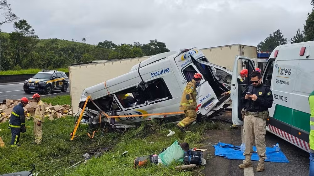 Segundo a PRF, o acidente aconteceu por volta das 3h45, no quilômetro 4,5 da rodovia, próximo à divisa com o estado de São Paulo. Todas as vítimas estavam na van.