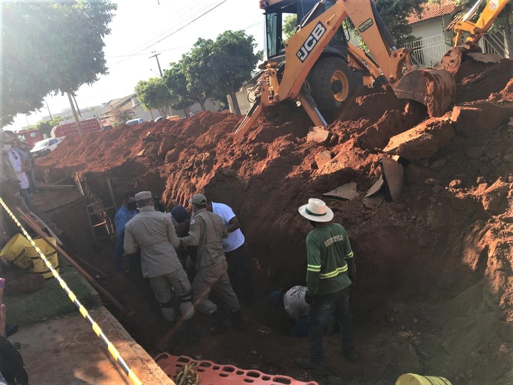 Trabalhadores soterrados são retirados com vida de trincheira no Bairro Bandeirantes