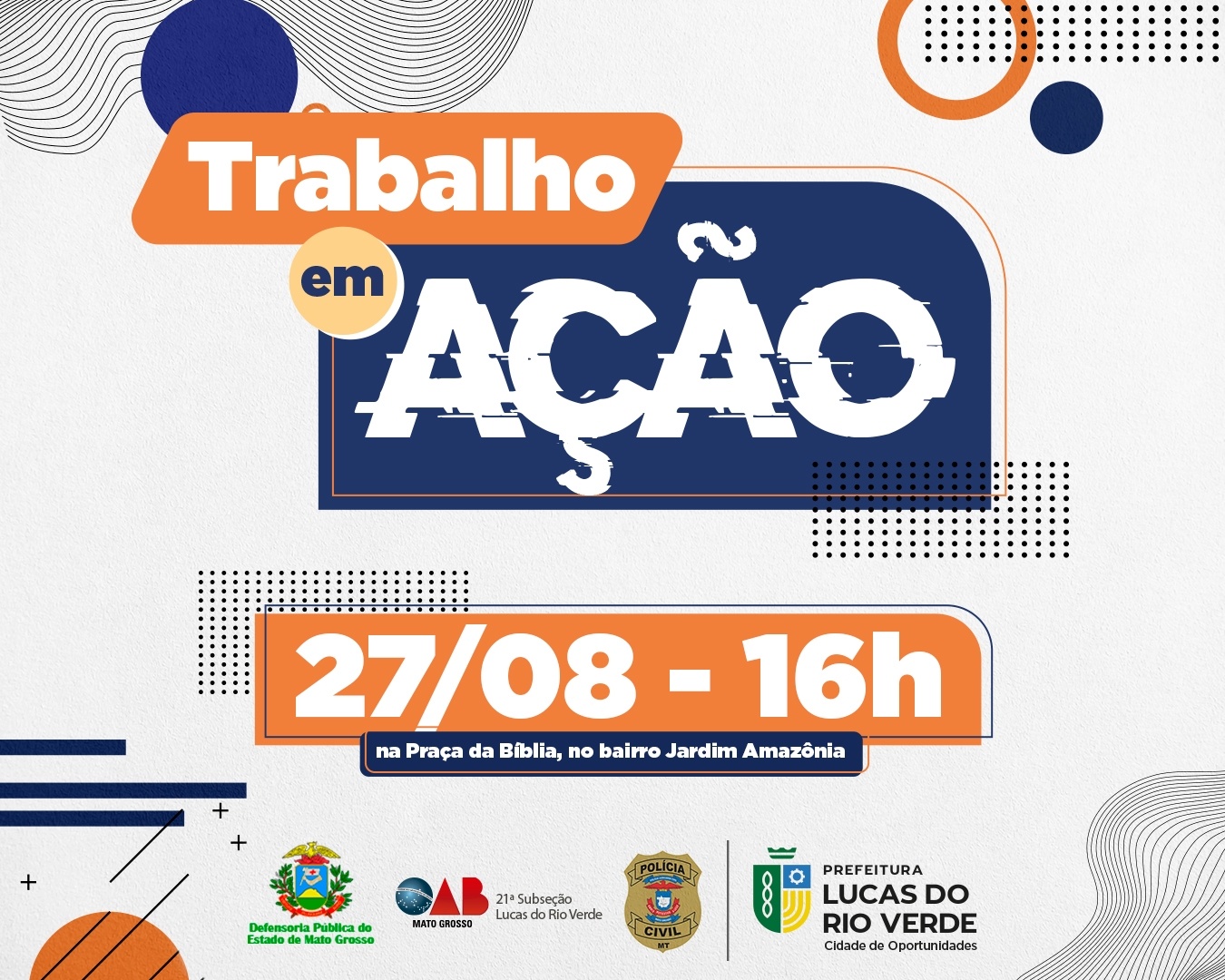 A Prefeitura de Lucas do Rio Verde, por meio da Secretaria de Assistência Social e Habitação, em parceria com a Ordem dos Advogados do Brasil (OAB) do município, convida a população para participar do evento “Trabalho em Ação”, que tem por objetivo aproximar e conscientizar os luverdenses dos serviços oferecidos pela prefeitura.
