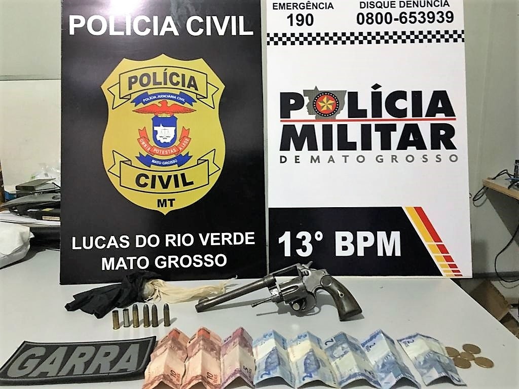 Com o suspeito foi encontrado um revólver calibre 38, cano longo com seis munições, quantidade significativa de maconha e R$ 36,00 em dinheiro.
