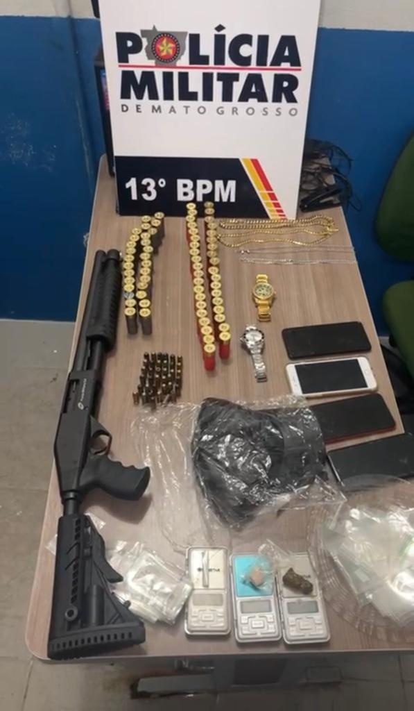 Três são detidos pela PM com espingarda, munições e entorpecentes em Lucas do Rio Verde