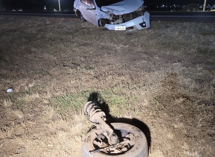 Três veículos colidem na BR-163 em Sinop e um tem a roda arrancada