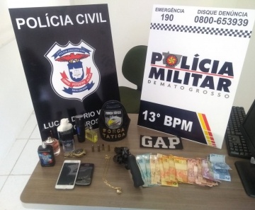 Não foi informado que objetos foram levados das vítimas nos dois roubos. Com o trio foram apreendidos um revólver calibre 38, quatro munições intactas, três aparelhos de telefone celular, uma corrente dourada, um anel dourado e R$ 591 em moeda nacional. Todos foram encaminhados para a Delegacia de Polícia Civil ficando a disposição da Justiça.