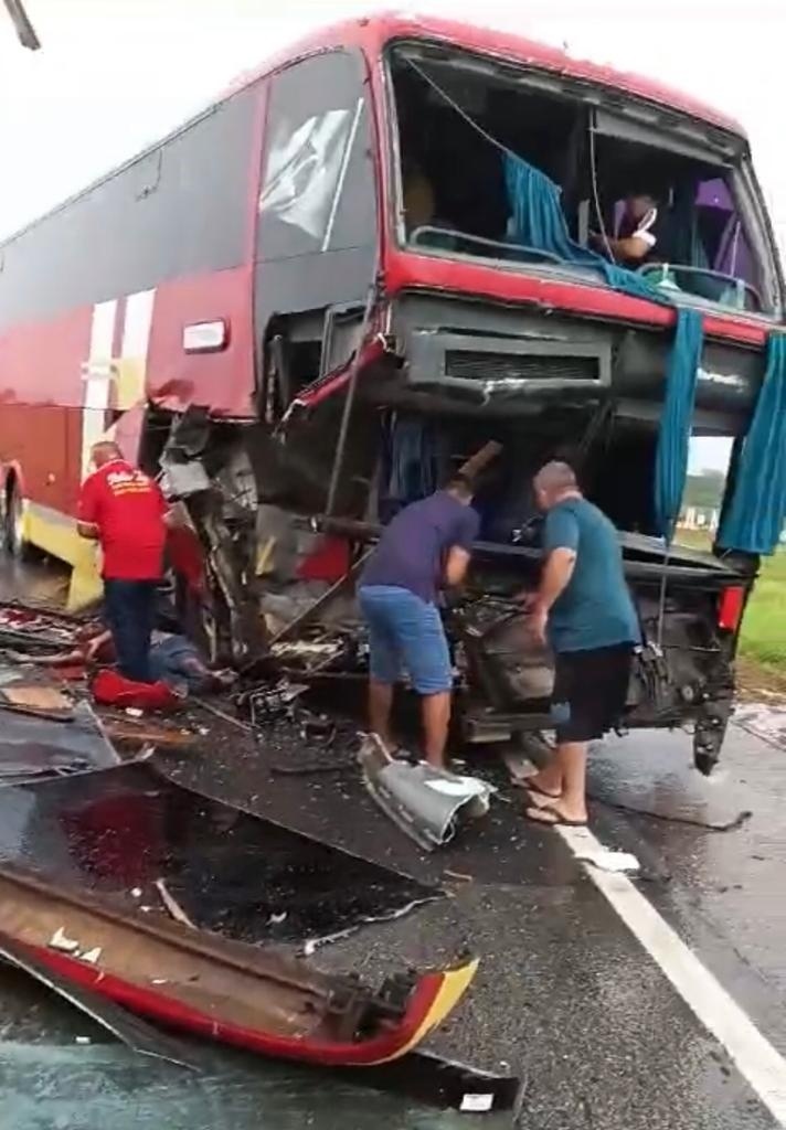 As informações iniciais apontam que chovia no momento da colisão. O tipo e a causa do acidente serão apontados pelos órgãos competentes. Estiveram no local a Politec, PRF e Corpo de Bombeiros.