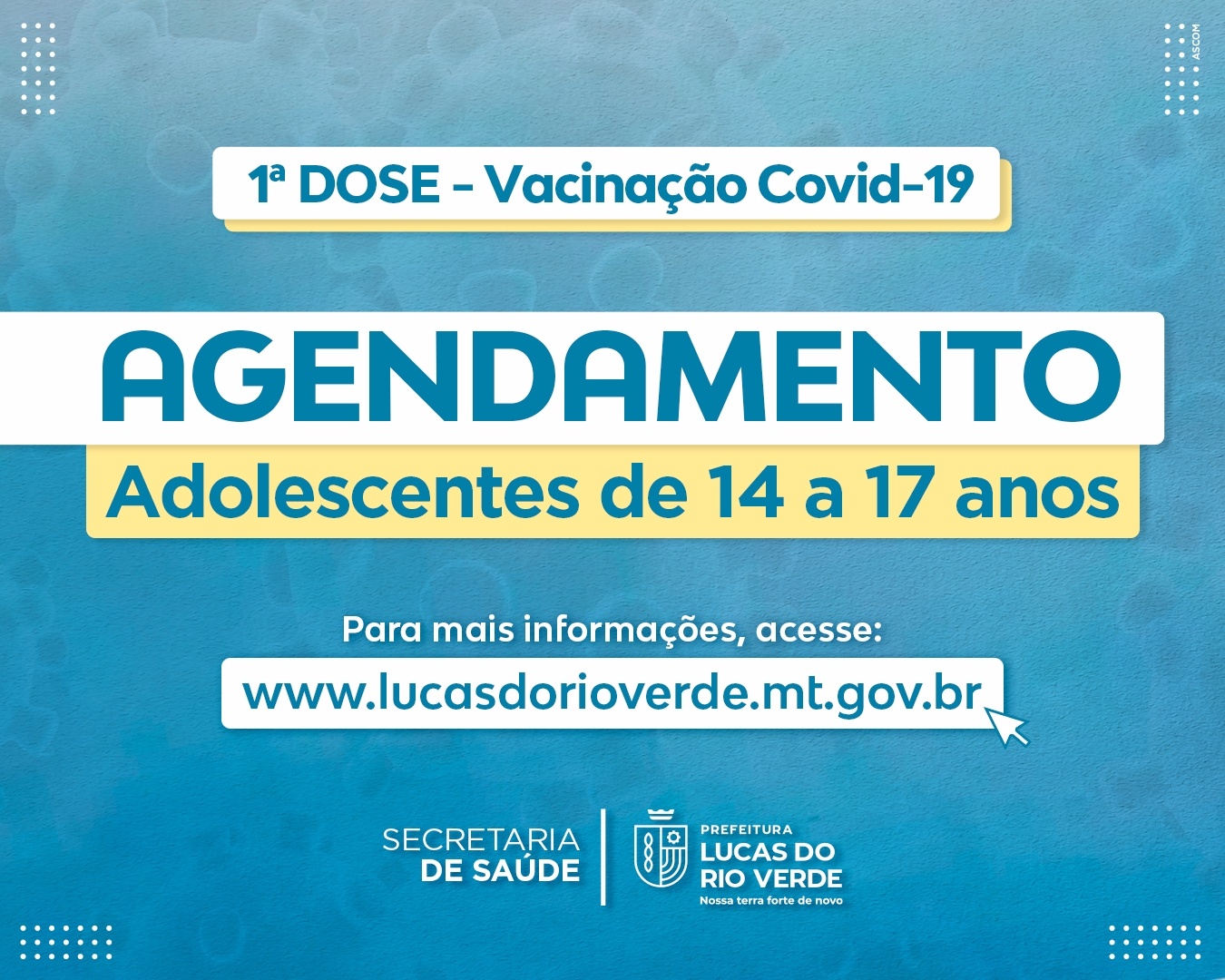 A Prefeitura de Lucas do Rio Verde informa que a partir de segunda-feira (08) a vacinação de primeira dose para adolescentes de 14 a 17 anos passa a ser realizada por meio de agendamento no site da Prefeitura. O objetivo do agendamento é organizar a distribuição das vacinas.