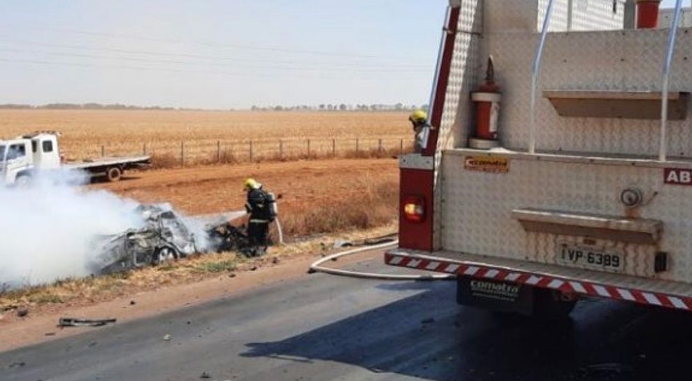 Veículo com placa de Lucas pega fogo após colisão na BR-163 e motorista morre carbonizado