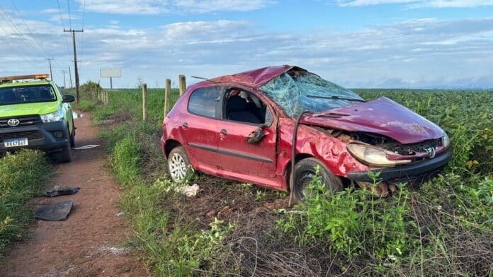 No início da manhã desta quarta-feira (22), às 06h25, um veículo Peugeot 206 de cor vermelha, placas de Sorriso, sofreu um capotamento no Km 746 da BR-163, em Sorriso, sentido Sinop.