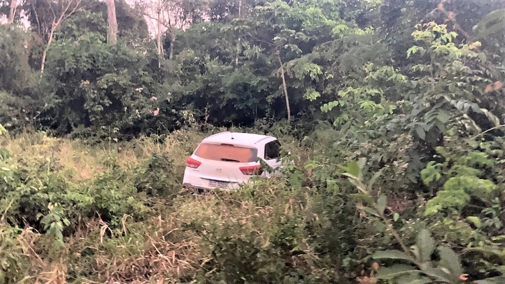 Os policiais encontraram o rastro dos suspeitos e localizaram o veículo abandonado em uma região de mata próximo a antiga ponte do Rio Cedrinho. Foi realizado contato com o plantão e solicitado apoio com guincho para remover o Creta do local. Marcas na beira do rio indicaram que os suspeitos o atravessaram tomando rumo ignorado.