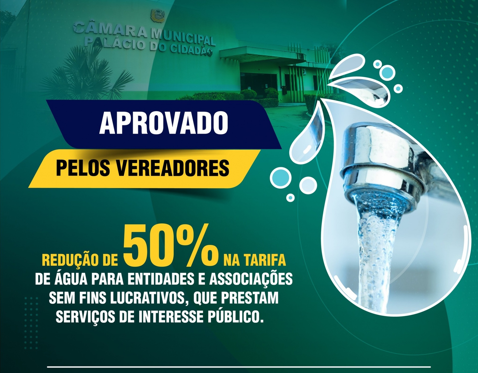 Vereadores aprovam projeto para redução de 50%na tarifa de água para instituições sem fins lucrativos