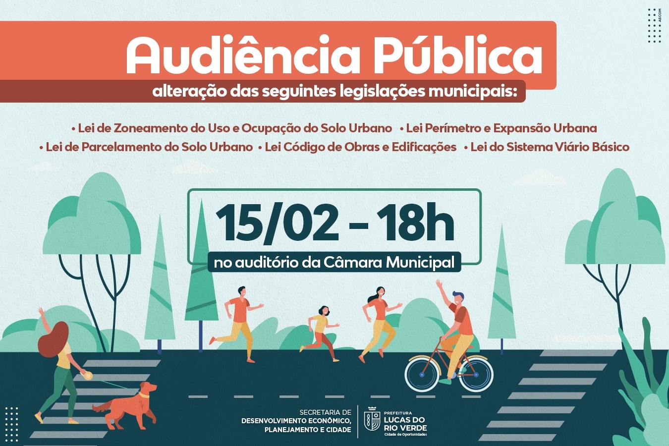 Alterações nas legislações de zoneamento urbano e no código de obras são os temas de uma audiência pública na próxima quarta-feira (15). O encontro será realizado pela Prefeitura de Lucas do Rio Verde, a partir das 18h, na Câmara de Vereadores.